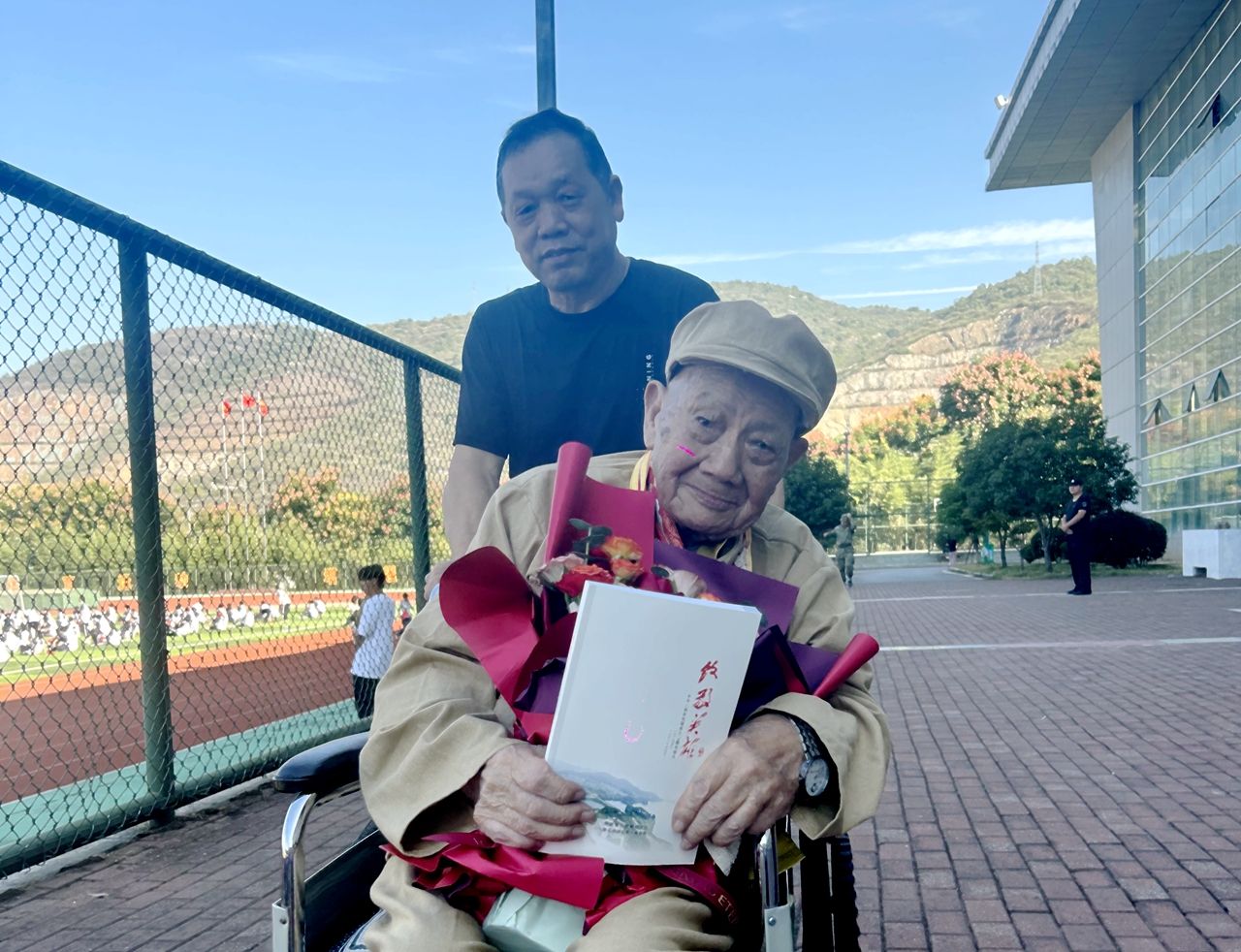98歲老兵庫(kù)芳禹對(duì)《致敬英雄》報(bào)道集愛不釋手。呂鑒蕾 攝