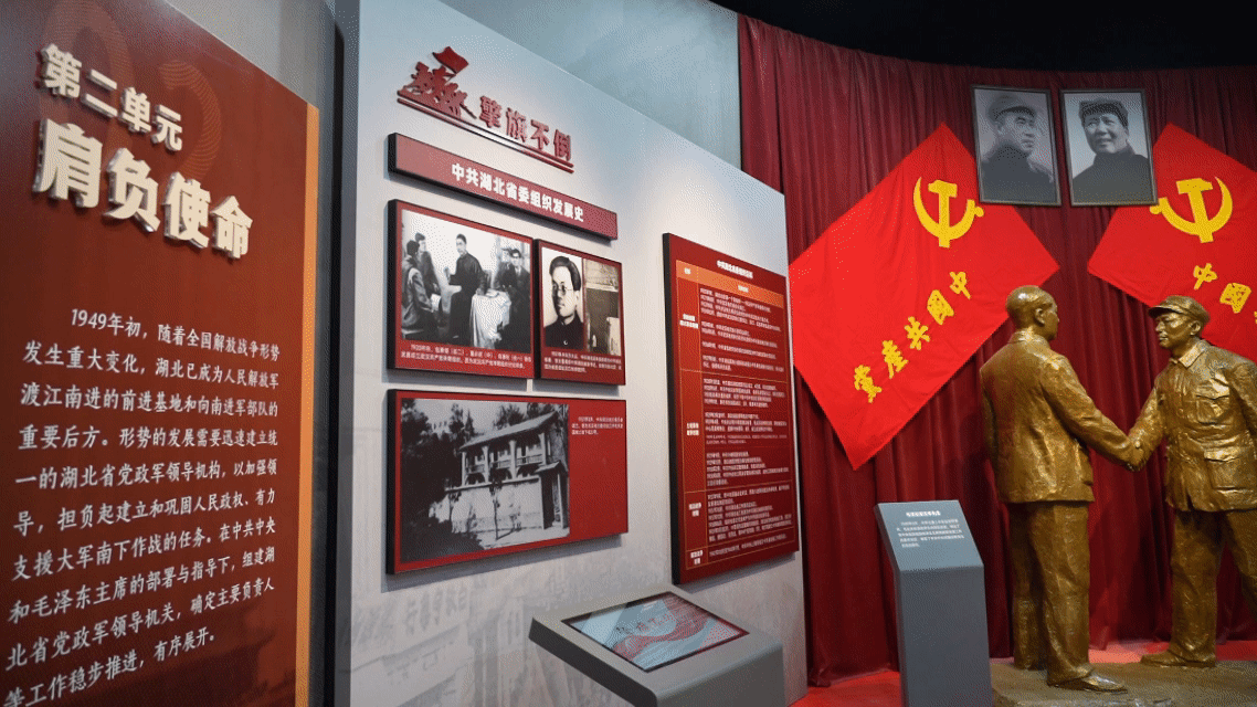 此次開放運(yùn)行的新湖北黨政軍誕生地歷史陳列館占地面積1128平方米,以“新湖北從這里走來(lái)”為主題,由序廳、勝利曙光、歷史選擇、楚天新生、尾廳五部分組成,介紹了新湖北黨政軍誕生地的歷史背景、重要事件、核心革命先輩和歷史貢獻(xiàn)。