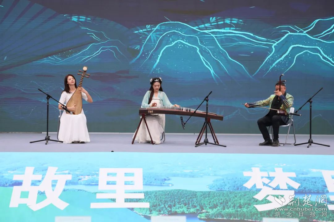舞臺(tái)一側(cè)的風(fēng)光攝影展和孝昌農(nóng)特、文創(chuàng)產(chǎn)品展銷,則吸引不少游客駐足觀看。