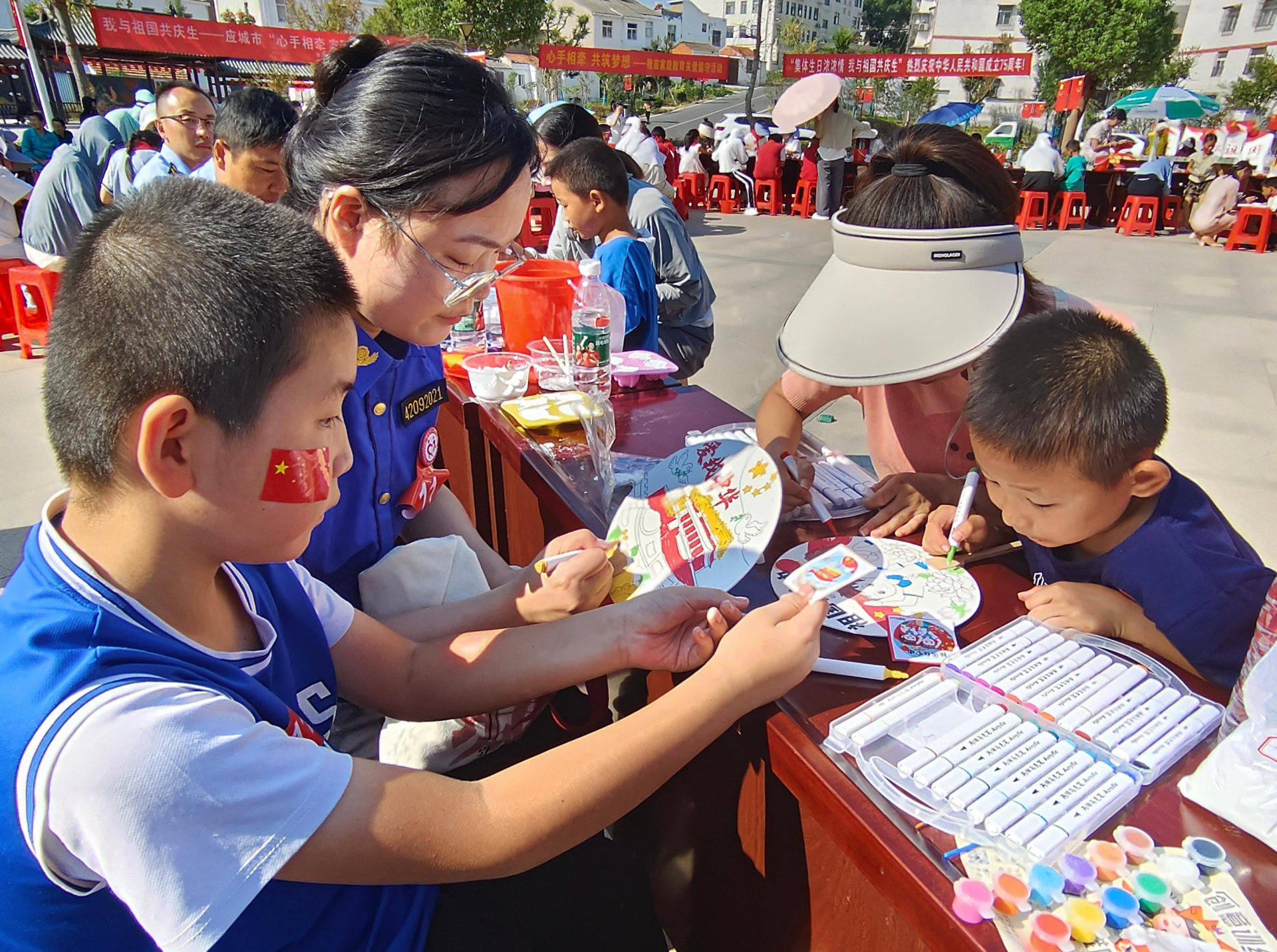 活動(dòng)現(xiàn)場(chǎng)熱鬧非凡,結(jié)對(duì)兒童在愛心媽媽陪伴下觀看舞蹈《離騷》、制作膏塑作品、歌頌祖國盛世、共品主題蛋糕、歡度國慶到來。