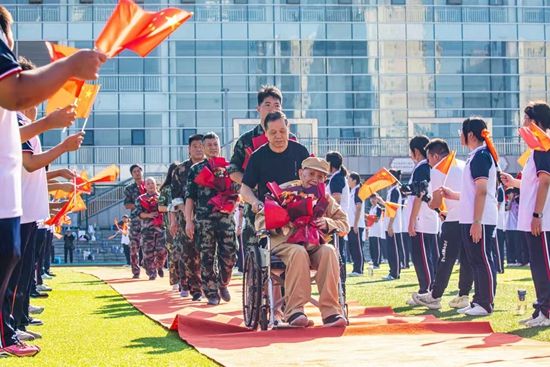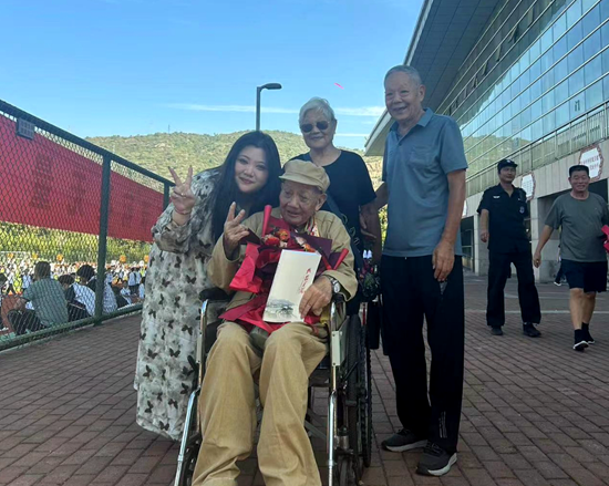 荊楚網(wǎng)(湖北日報網(wǎng))訊(記者呂鑒蕾、通訊員黃旺宣、范晨熠、李?。?月29日,湖北師范大學附屬中學(黃石一中)操場,當98歲的老兵由家人推著輪椅,緩緩走上紅地毯時,現(xiàn)場爆發(fā)出雷鳴般的掌聲。