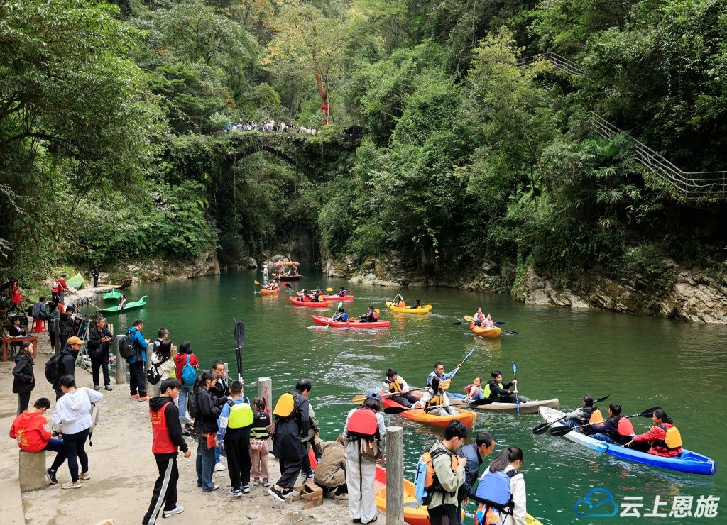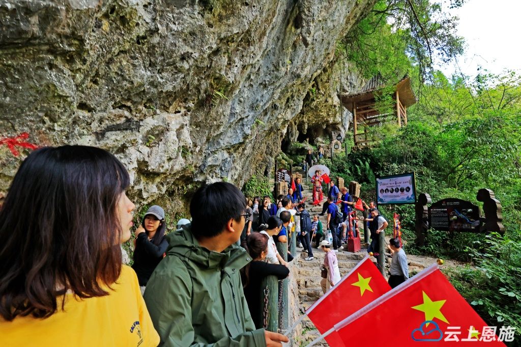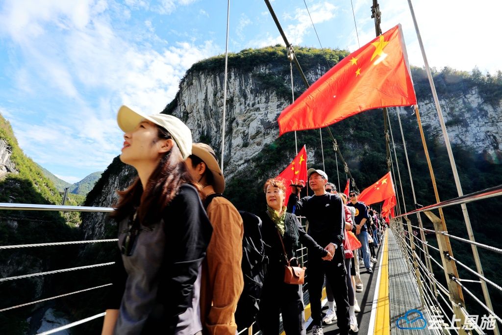 云上恩施報道(建始通聯(lián)記者 田莉 通訊員 吳冰)紅旗在風(fēng)中飄揚,歌聲在山間回蕩,來自四面八方的游客在陽光照耀下享受秋日美好時光……國慶長假7天樂,地心谷景 區(qū)旅游格外“紅”!
