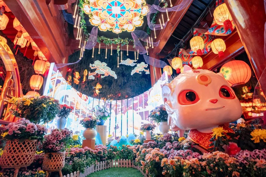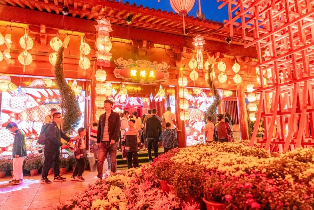 滿園燦爛耀眼的花燈齊齊點(diǎn)亮,
