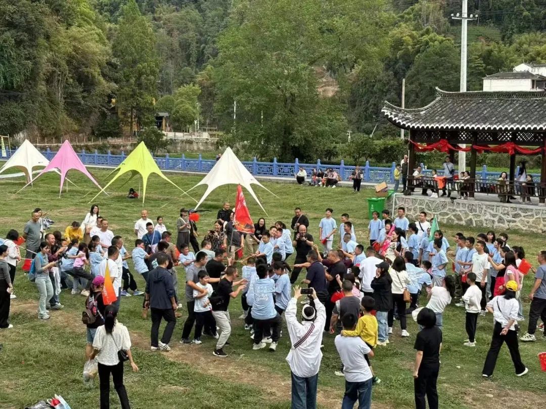 松弛的鄉(xiāng)村游同樣引領(lǐng)了這個(gè)假期的新風(fēng)尚。從青山綠水到豐收的田野,多彩的鄉(xiāng)村體驗(yàn)活動(dòng),成為短途游、周邊游、休閑度假游的熱門選擇。白果鄉(xiāng)“塘里堂外”晉升成為新的網(wǎng)紅打卡地,搖身變成備受青睞、廣受熱捧的湖南芒果TV最新打造的《熾熱新聲》綜藝欄目拍攝錄制現(xiàn)場(chǎng)。大家紛紛前來打卡,吹著秋風(fēng)、蕩著秋千、吃著美食感受秋日里大自然的寧?kù)o。楓香坡、二官寨景區(qū)內(nèi)國(guó)旗飄揚(yáng),孩子們通過農(nóng)事體驗(yàn)等活動(dòng),享受親子互動(dòng)的樂趣。