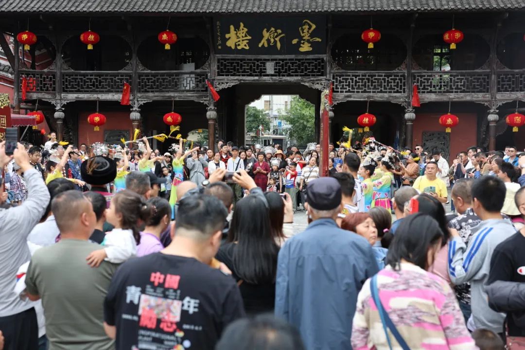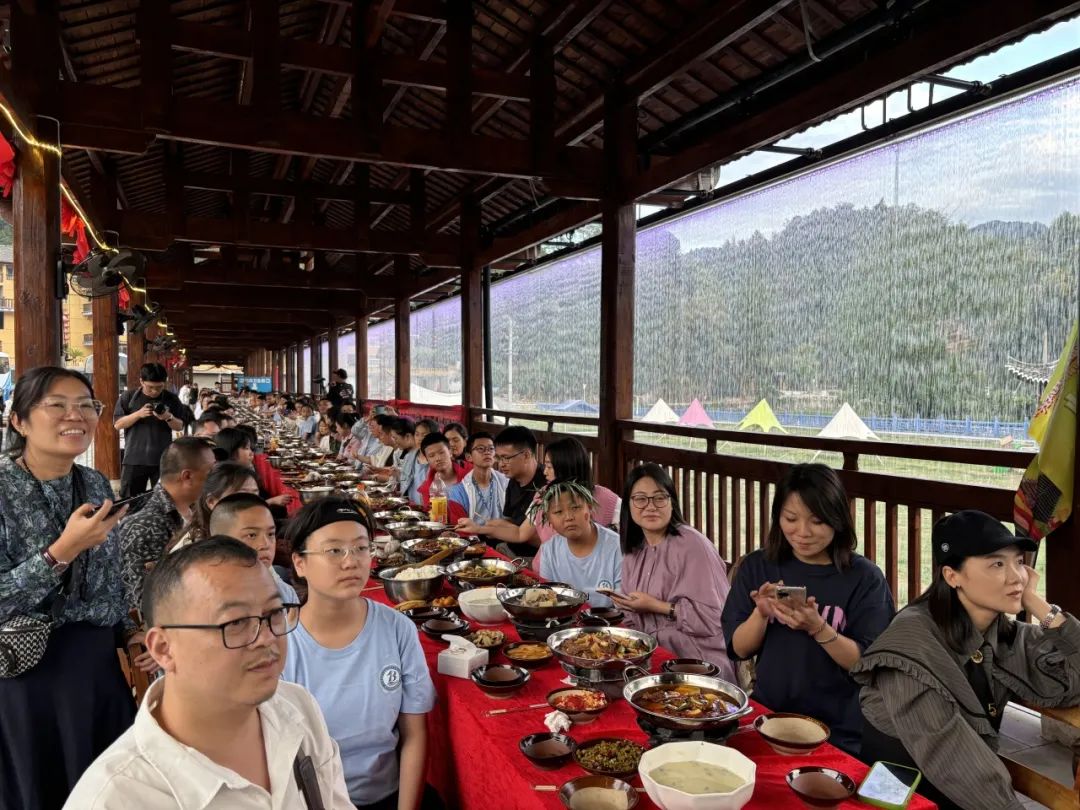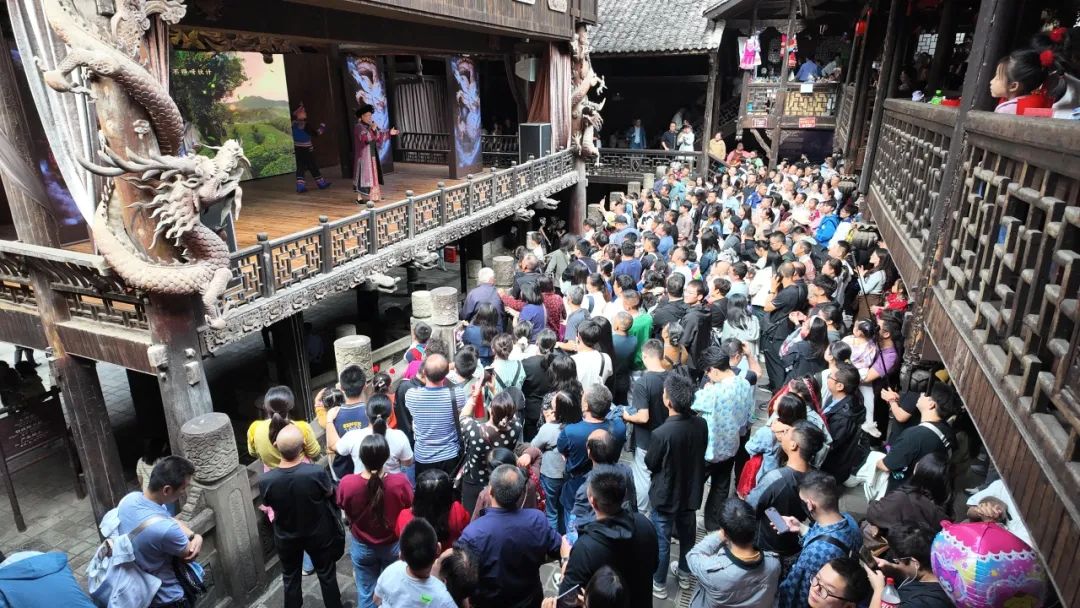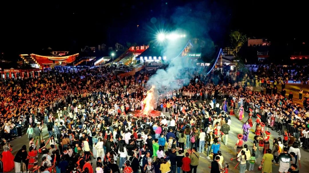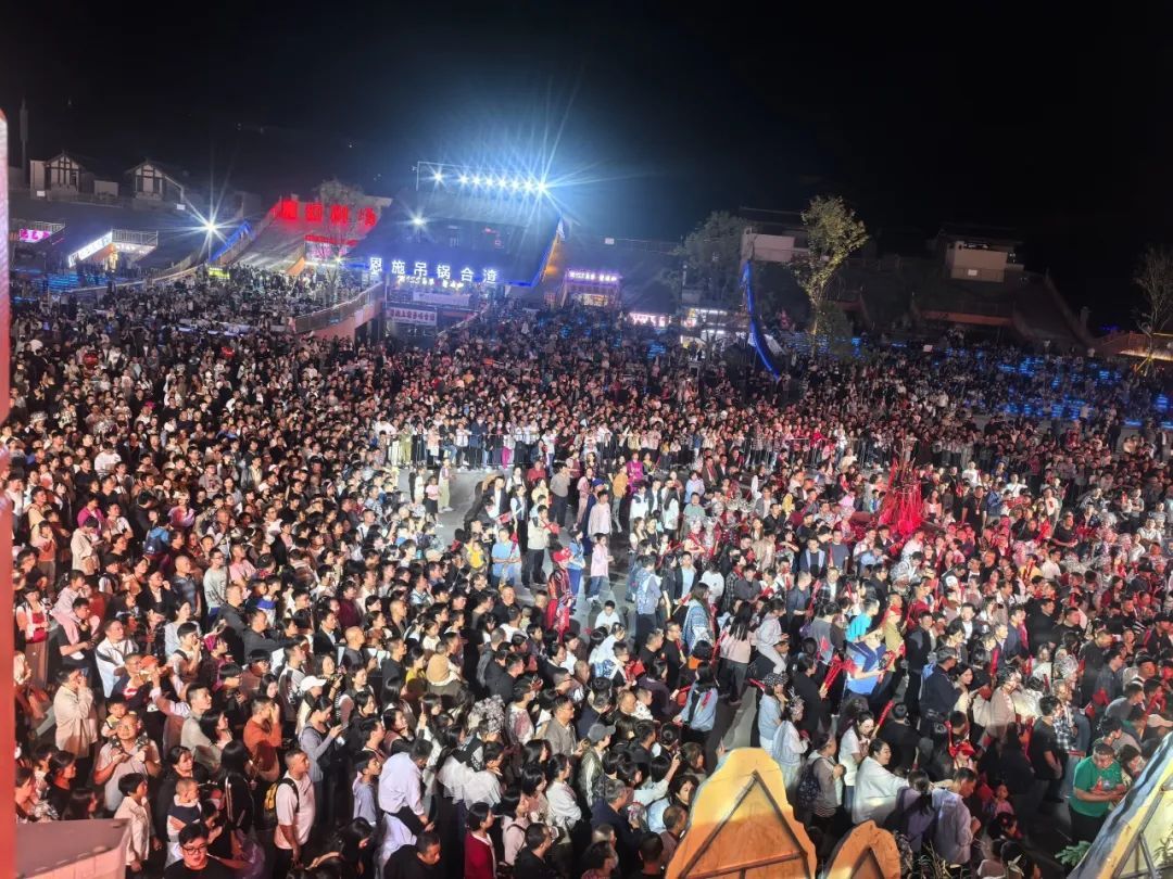 恩施女兒城景區(qū)上演著“人從眾”模式。國(guó)慶專題街區(qū)快閃活動(dòng)、“篝火晚會(huì)”“趕場(chǎng)相親女兒會(huì)”實(shí)景演出,來自五湖四海的游客共同感受恩施的熱情與豪邁。