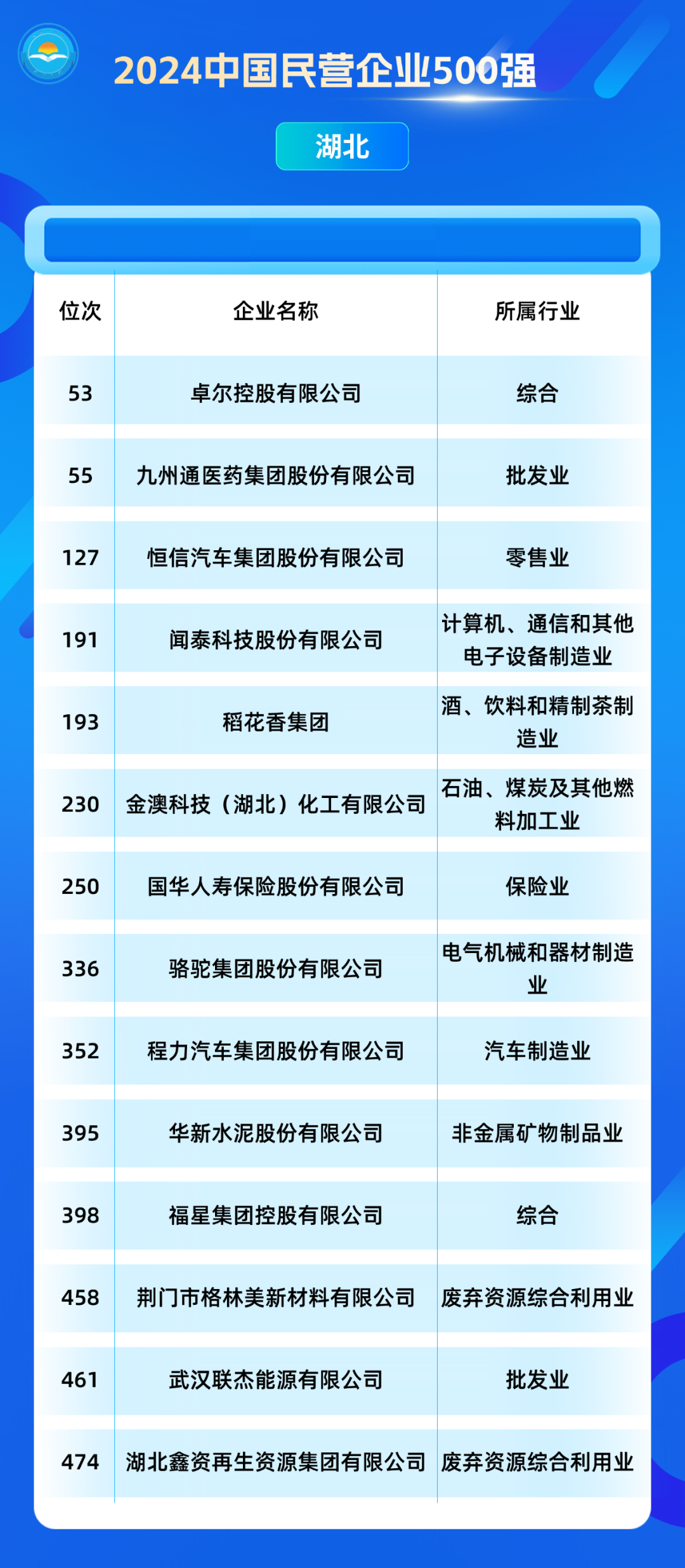 2024年10月12日,全國工商聯(lián)發(fā)布“2024中國民營企業(yè)500強”“2024中國民營企業(yè)制造業(yè)500強”“2024中國民營企業(yè)服務業(yè)100強”榜單,我省18家民企入圍三個榜單,其中,14家企業(yè)入圍“2024中國民營企業(yè)500強”,12家企業(yè)入圍“2024中國民營企業(yè)制造業(yè)500強”,4家企業(yè)入圍“2024中國民營企業(yè)服務業(yè)100強”。