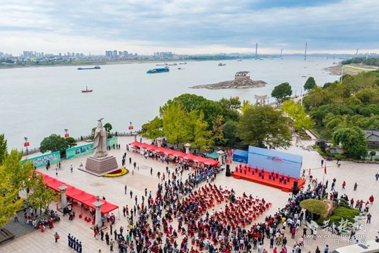 鑼鼓表演《中國范兒》、朗誦串燒《萬里長江第一閣》、楚風(fēng)楚韻《編鐘樂舞》……當(dāng)天上午,熱鬧非凡的孫權(quán)廣場與江中靜靜矗立著的觀音閣遙遙相望,眾多文藝節(jié)目輪番上演,為現(xiàn)場群眾提供了一場古風(fēng)古韻的視聽盛宴。