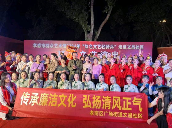 荊楚網(wǎng)(湖北日報網(wǎng))訊(通訊員向晨 楊纓)10月18日晚,孝感市孝南區(qū)廣場街道文昌社區(qū)聯(lián)合孝感市群眾藝術(shù)館,開展“紅色文藝輕騎兵”走進(jìn)文昌社區(qū),傳承廉潔文化,弘揚清風(fēng)正氣,惠民文藝演出。