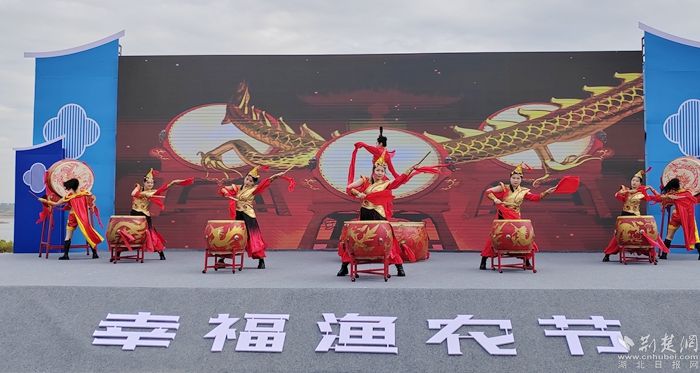在漁農(nóng)文藝觀賞區(qū),開幕儀式上頒發(fā)了陶店鄉(xiāng)農(nóng)業(yè)發(fā)展顧問和電商發(fā)展顧問的聘書,并舉行了湖北淼燁生態(tài)農(nóng)業(yè)有限公司巴河魚丸項(xiàng)目的簽約儀式。舞臺上,身著統(tǒng)一服裝的表演者們揮舞著鼓槌,敲打著鑼鼓,喜慶的氛圍讓現(xiàn)場觀眾心潮澎湃,掌聲雷動。
