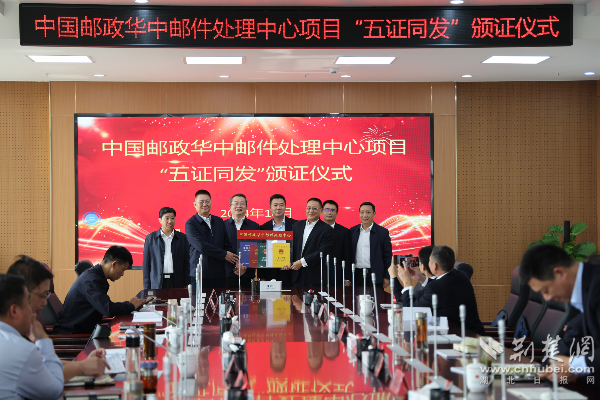 荊楚網(湖北日報網)訊(通訊員 肖文丹、饒清雄)10月30日,中國郵政華中郵件處理中心項目“五證同發(fā)”活動在中國郵政孝感分公司舉行。該項目也是繼6月18日孝南區(qū)頒發(fā)全省首批“一網集成”辦理“五證”后的又一重點項目。