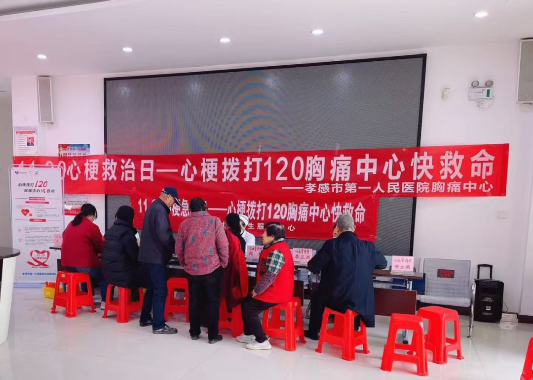 當天上午,孝感市第一人民醫(yī)院心血管內科為主導的金心團隊走進沙溝社區(qū),開展“1120心梗救治日”義診宣教活動,通過多種方式向市民普及心梗的救治常識,倡導健康生活方式,提升廣大市民的急救意識。