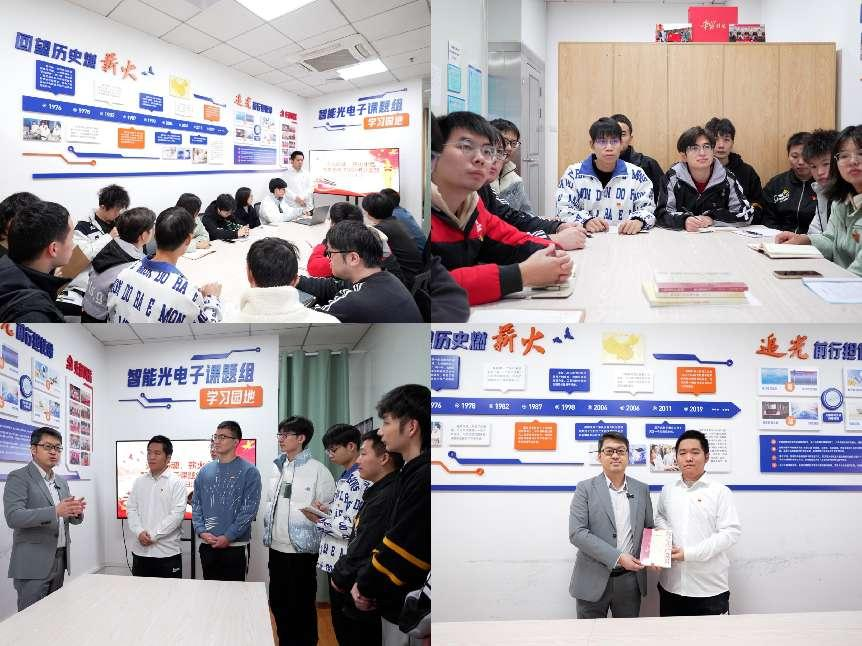 11月18日,支部書記胡臨風(fēng)在鑒湖主樓608課題組學(xué)習(xí)園區(qū)主持理論學(xué)習(xí)活動(dòng),深入解讀黨的二十大和二十屆二中、三中全會(huì)關(guān)于教育科技人才工作的重要部署?;顒?dòng)邀請(qǐng)李政穎教授講授“回顧光纖發(fā)展史,追光鑄魂育新人”的專題知識(shí),李教授描繪了光纖技術(shù)的發(fā)展歷程,并指引了黨支部的未來(lái)發(fā)展方向——黨建與科研同向同行,讓黨支部的堡壘作用和黨員的先鋒模范作用在科研一線充分發(fā)揮。李教授還向支部贈(zèng)予《我是共產(chǎn)黨員——科學(xué)報(bào)國(guó)帶頭人》等書籍,鼓勵(lì)黨員們投身科研一線,矢志奮斗報(bào)國(guó)。