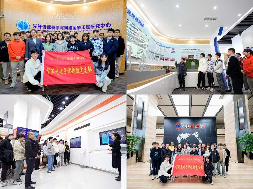 11月19日,支部成員前往武漢理工大學(xué)德生樓和烽火通信科技股份有限公司進(jìn)行實(shí)踐訪學(xué)。在德生樓,支部成員充分學(xué)習(xí)到光纖傳感器作為新質(zhì)傳感器的代表,在智慧交通、智慧醫(yī)療等領(lǐng)域發(fā)揮的重要作用;在烽火公司,支部成員了解并熟悉了中國(guó)光纖通信的發(fā)展歷史與發(fā)展現(xiàn)狀,認(rèn)識(shí)到中國(guó)光領(lǐng)域的發(fā)展進(jìn)步與中國(guó)科技創(chuàng)新能力的發(fā)展進(jìn)步同頻共振。通過(guò)了解我國(guó)在光纖領(lǐng)域取得的成就,尋訪一代代追光人的追光之路,有力加深了支部黨員對(duì)理論學(xué)習(xí)知識(shí)的認(rèn)知程度,堅(jiān)定了支部成員科研報(bào)國(guó)的使命決心,充分落實(shí)黨支部“為黨育人、為國(guó)育才”使命任務(wù)。
