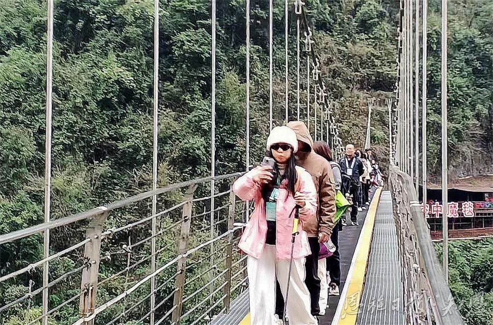 恩施地心谷,一個藏匿于地球深處的奇跡之地,以其幽深的峽谷、奇特的地貌、清澈的溪流和豐富的生態(tài)資源,被譽(yù)為自然界的瑰寶。當(dāng)參會人員踏入這片秘境,他們被眼前的壯麗景色深深吸引,仿佛置身于一幅動人心魄的自然畫卷之中。一位來自廣東的旅行商表示:“這里的景色超出了我的想象,每一處都是自然的杰作,讓人流連忘返。”