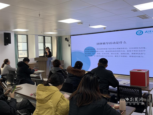 武漢市武東醫(yī)院精神衛(wèi)生防治辦公室主任孫琳介紹團(tuán)體活動(dòng)。 通訊員供圖