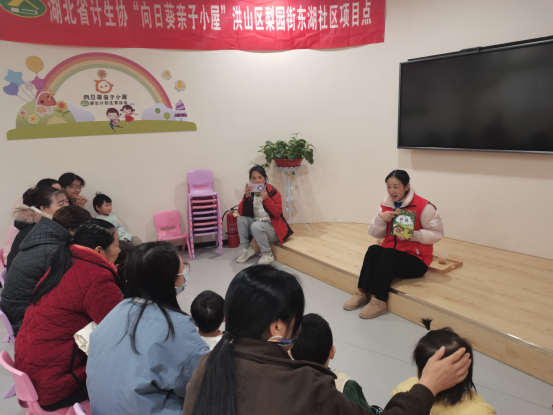 12月26日上午9點(diǎn),湖北省計(jì)劃生育協(xié)會洪山區(qū)梨園街東湖社區(qū)向日葵親子小屋項(xiàng)目點(diǎn)的親子早教課程如期開展。