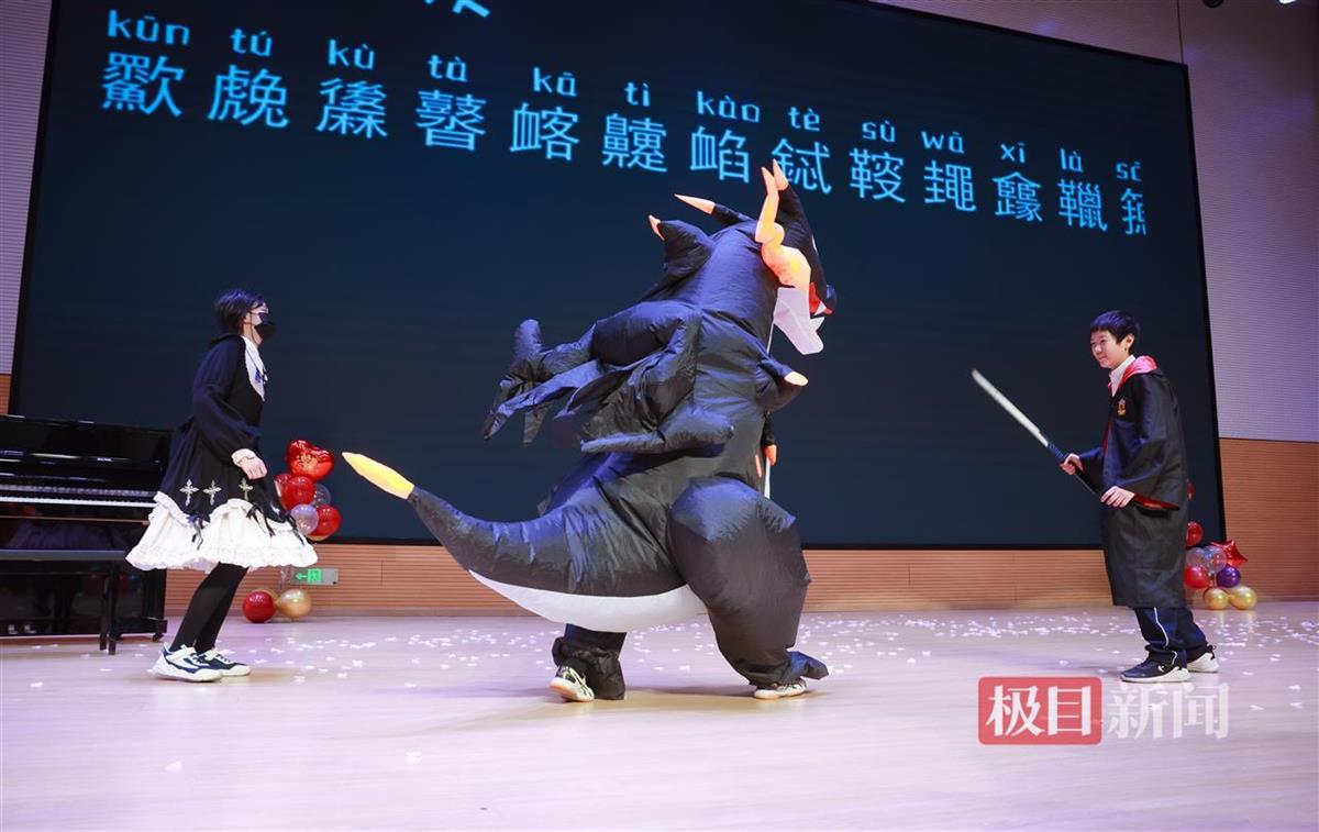 704班學(xué)生演了一出《達(dá)拉崩吧》話劇,騎士、公主、國(guó)王、恐龍、馬的服裝是他們定的,炫酷搞笑的視頻布景也是他們做的?!拔覐男⊥婢幊?,這個(gè)還好啦,演恐龍的寇樂(lè)芊也有幫我剪視頻?!逼渲猩砑鎸?dǎo)演、舞美設(shè)計(jì)、騎士扮演者三職的劉致銘說(shuō)?!拔野嗪⒆友荨妒刈o(hù)之光》小品,就找劇本我?guī)土它c(diǎn)忙,其他都是他們自己安排。上周五全校彩排我第一次看完全劇,發(fā)現(xiàn)他們好有創(chuàng)意,好會(huì)演?!?05班班主任徐怡楠驕傲地說(shuō),每次活動(dòng)都發(fā)現(xiàn)許多學(xué)生的閃光點(diǎn),正如“走過(guò)冬天”藝術(shù)節(jié)的slogan(口號(hào))所說(shuō),在活動(dòng)中,青春多了一份厚實(shí),人生多了一份財(cái)富。