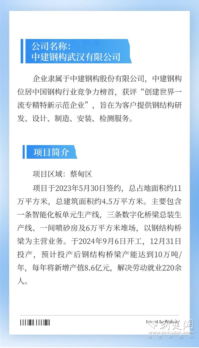 荊楚網(wǎng)(湖北日報(bào)網(wǎng))訊(通訊員 謝家奇 陳丹)2024年,武漢招商引資活力迸發(fā),一大批重點(diǎn)項(xiàng)目落地有聲。推動傳統(tǒng)產(chǎn)業(yè)轉(zhuǎn)型升級,培育壯大新興產(chǎn)業(yè)、未來產(chǎn)業(yè)齊頭并進(jìn),不斷擦亮“投資武漢”品牌,以高水平招商引資賦能武漢高質(zhì)量發(fā)展。