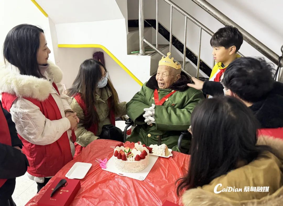1月17日上午,龔家?guī)X社區(qū)黨員滿懷敬意,帶著精心準(zhǔn)備的生日蛋糕和米油等生活物資,來到張業(yè)榮老人家中,為他補(bǔ)辦100歲生日。張業(yè)榮佩戴著“光榮在黨50年”紀(jì)念章,深情高唱《沒有共產(chǎn)黨就沒有新中國(guó)》,與大家一起重溫入黨誓詞,講述往昔革命故事。