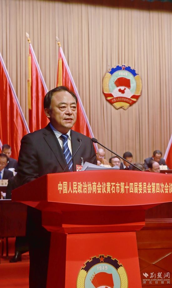 2月6日,中國人民政治協(xié)商會(huì)議黃石市第十四屆委員會(huì)第四次會(huì)議在黃石磁湖劇院開幕。中共黃石市委書記郄英才講話。