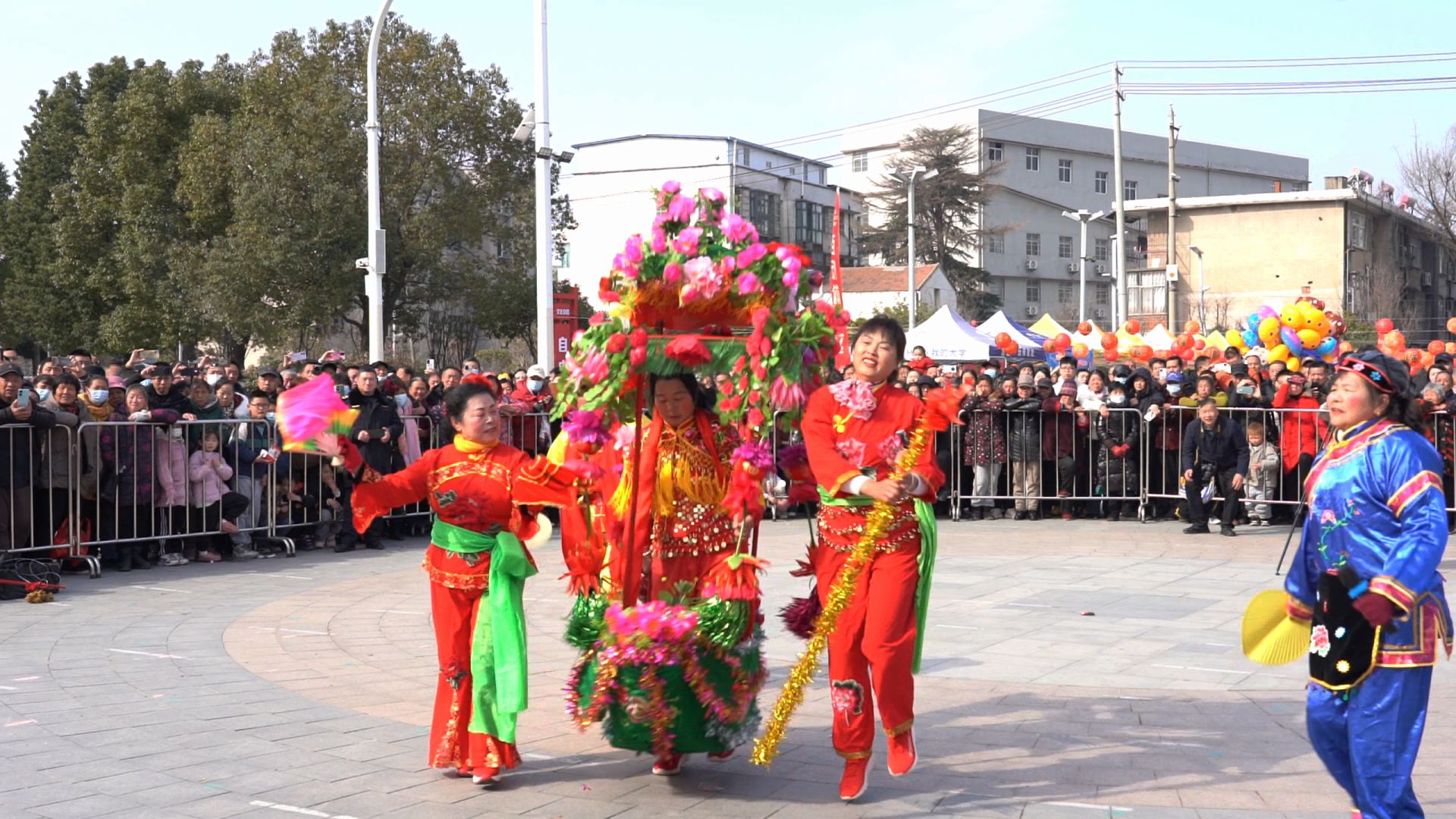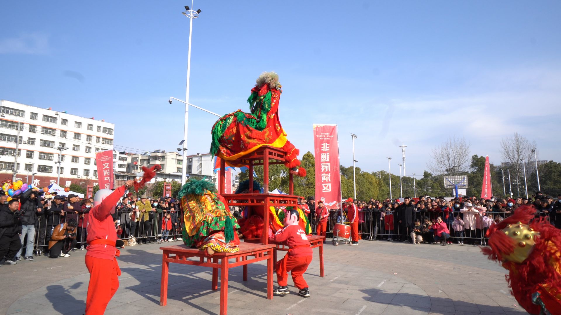 非遺市集活動(dòng)分為民俗非遺展示、非遺展演、互動(dòng)體驗(yàn)、文創(chuàng)產(chǎn)品展示、美食市集5大區(qū)域。展演區(qū)人氣火爆,宣化店鎮(zhèn)李樓舞獅隊(duì)表演“四獅獻(xiàn)瑞鬧元宵”,獅子們以其靈動(dòng)舞姿和默契配合,展現(xiàn)了全縣人民高揚(yáng)“進(jìn)”的主旋律、奮勇爭(zhēng)先的精神風(fēng)貌。