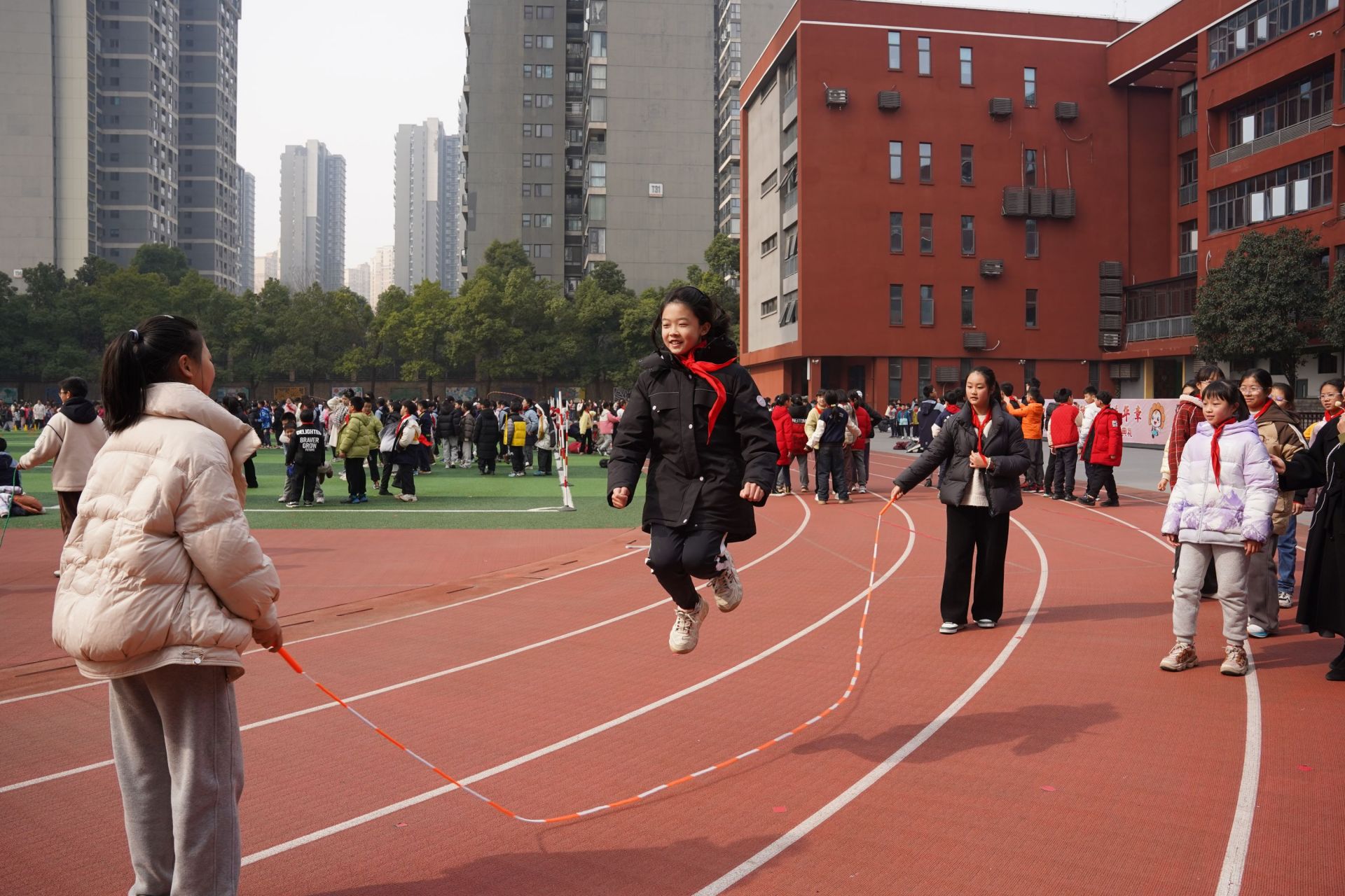 東湖實驗學校大課間,學生正在跳繩。張媛 攝