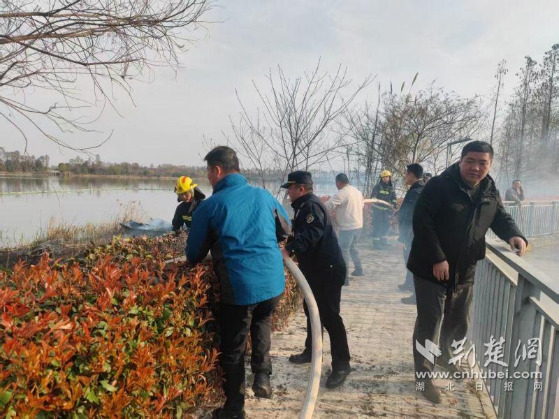 當日下午,東湖風景區(qū)城管執(zhí)法局四中隊隊員王建偉、宋威、劉鑫宇在九女墩附近巡查時,發(fā)現華僑城運動中心南山草木集門店附近有濃煙升起。他們迅速趕到現場,發(fā)現起火點為門店下方野塘中的蘆葦和干草,起火原因不明。由于野塘地勢復雜,無法直接取水滅火,現場情況較為緊急。