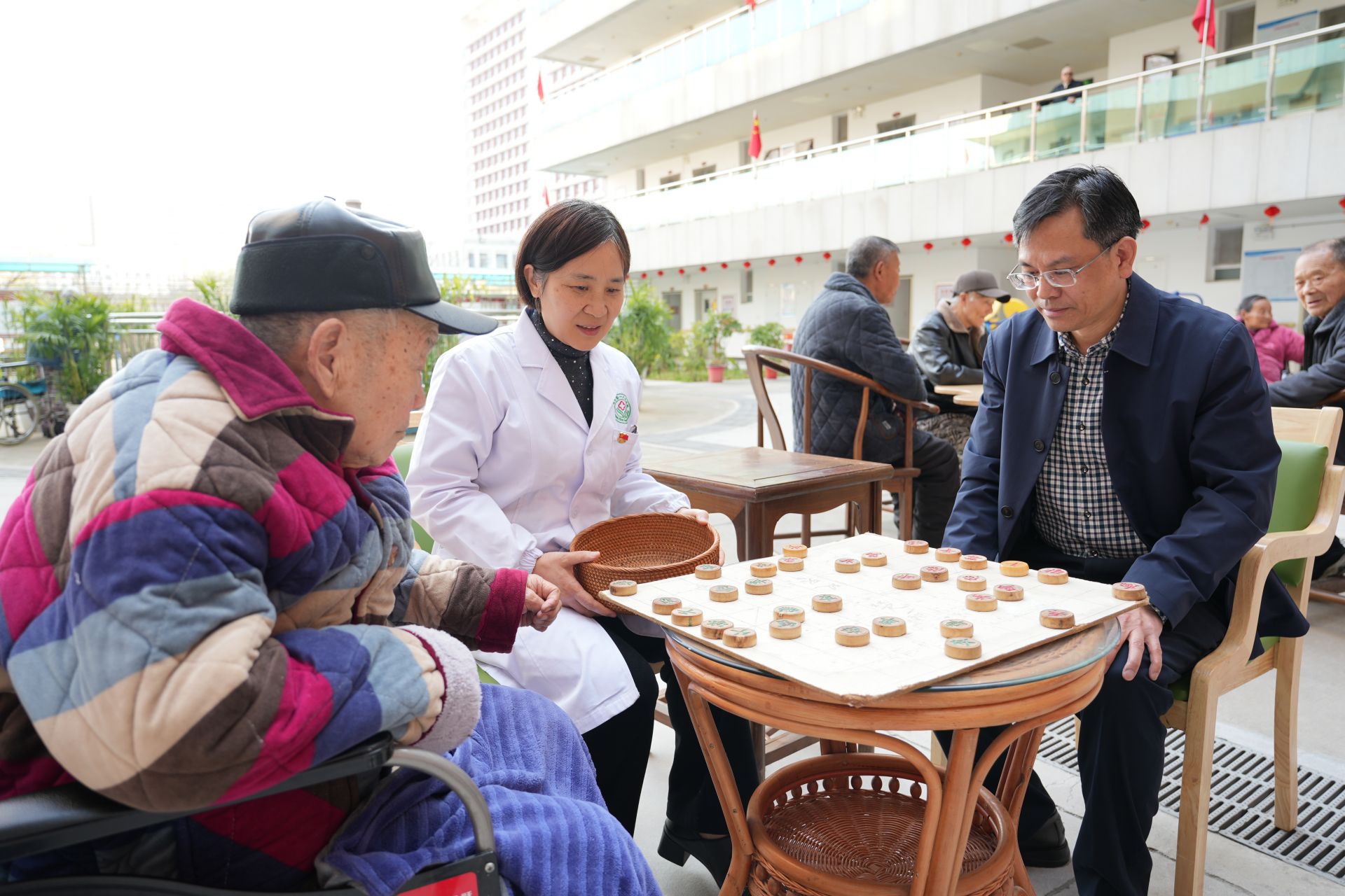 荊楚網(wǎng)(湖北日?qǐng)?bào)網(wǎng))訊(通訊員劉惠林)3月23日上午,孝感市第一人民醫(yī)院愛心護(hù)理院活動(dòng)室,副院長(zhǎng)阮建中正與一位老人下著象棋。棋桌旁,醫(yī)護(hù)人員和志愿者忙著給老人端茶送水,場(chǎng)面溫馨而歡樂。