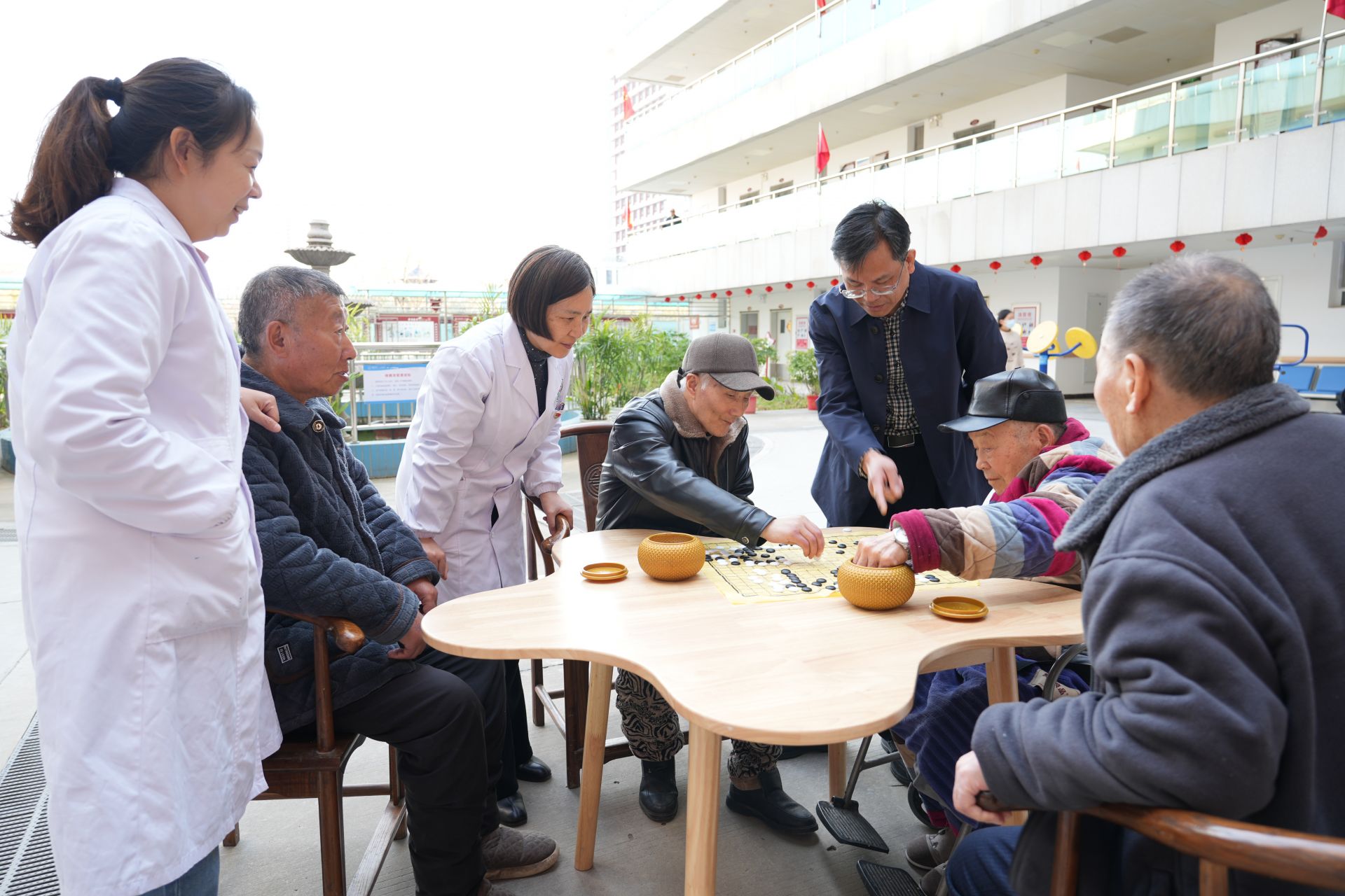 “阮院長(zhǎng)下棋時(shí),還教老人做手指操,既娛樂又有收獲!”一位老人的家屬感慨。