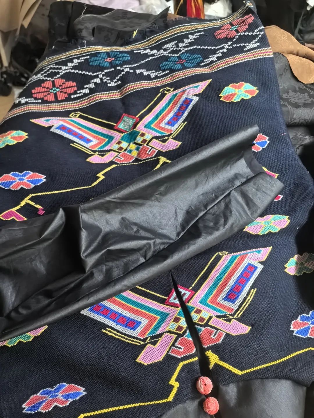 兼熹南錦品牌創(chuàng)始人馬黎的作品《熹南錦新鳳穿牡丹蝴蝶香旗袍》亮相2024年倫敦手工藝周“設(shè)計中國·和韻華夏”主題展?恩施作品,亮相倫敦!