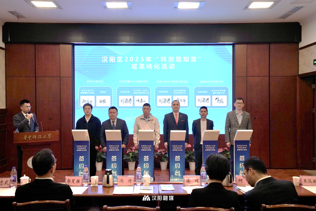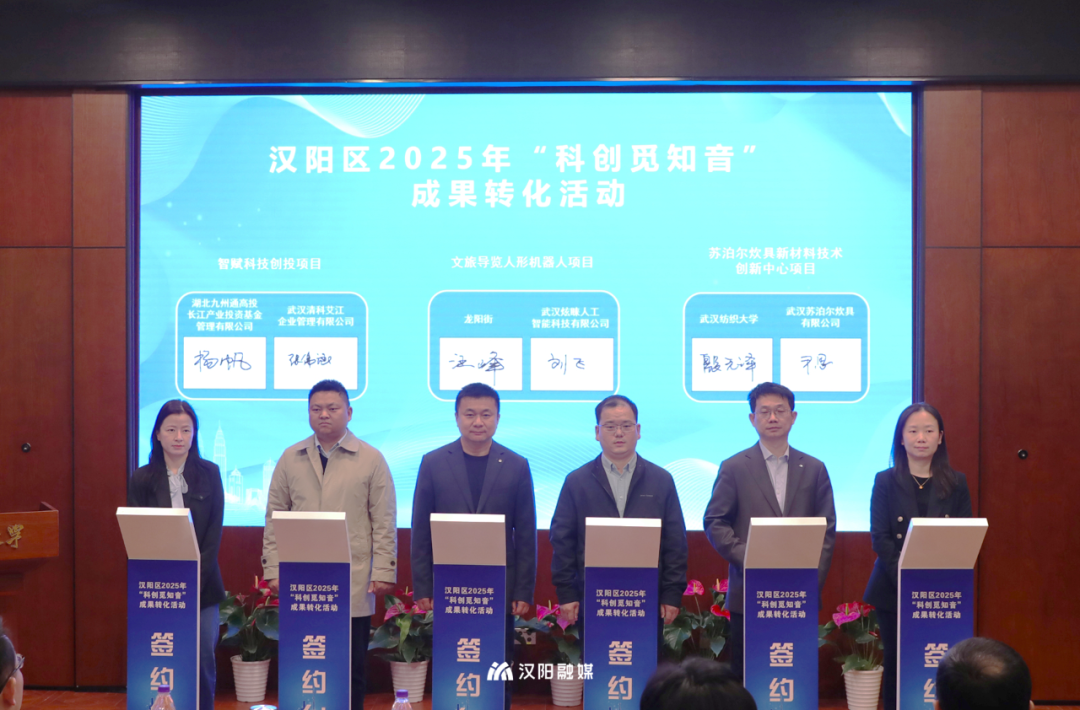 4月2日,漢陽區(qū)2025年“科創(chuàng)覓知音”成果轉(zhuǎn)化活動首次走進(jìn)華中科技大學(xué),現(xiàn)場13個科創(chuàng)項目集中簽約,涵蓋人工智能、智能制造、綠色低碳等多個新興產(chǎn)業(yè)領(lǐng)域,其中約七成是從在漢高校飛出的科技成果轉(zhuǎn)化和創(chuàng)業(yè)項目,來自華中科技大學(xué)和武漢理工大學(xué)的3個機(jī)器人項目備受關(guān)注。
