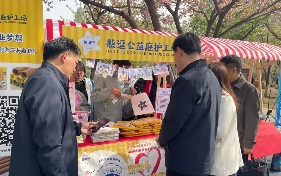 憨豆公益在現(xiàn)場開展義賣活動。