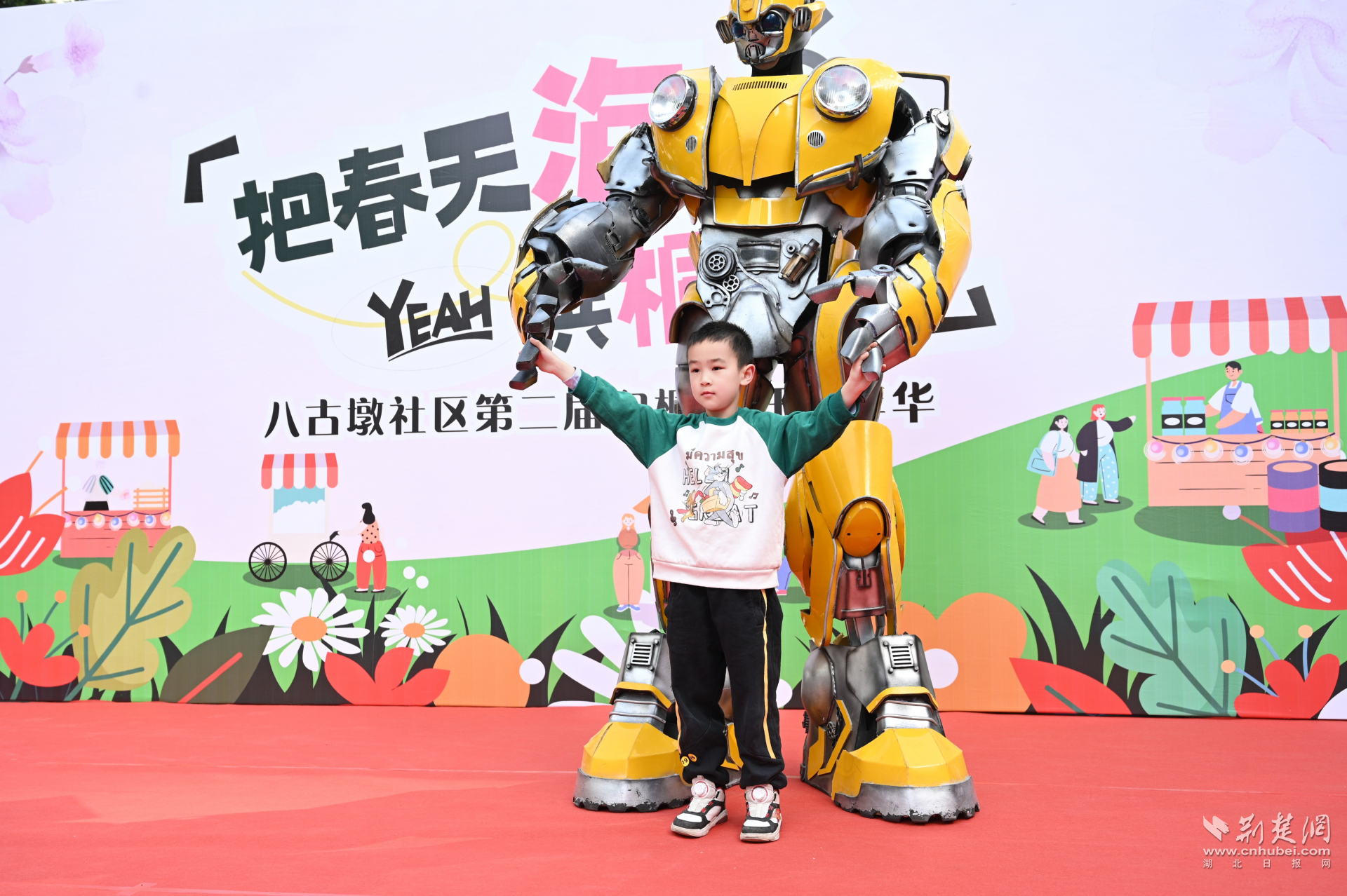 全民共建聚合力?;顒?dòng)籌備階段,社區(qū)黨委充分發(fā)揮居民議事會(huì)作用,發(fā)動(dòng)30余名居民志愿者成立策展專班。轄區(qū)居民羅先生主動(dòng)請(qǐng)纓,免費(fèi)贊助大黃蜂機(jī)器人、小丑巡游等氛圍裝置,并與社區(qū)文藝團(tuán)隊(duì)自編自演的5支主題舞蹈形成創(chuàng)意碰撞。當(dāng)三米高的炫酷機(jī)器人牽手小丑姑娘巡游時(shí),現(xiàn)場(chǎng)瞬間化作歡樂海洋,居民們爭(zhēng)相與巡游隊(duì)伍合影,自發(fā)在朋友圈發(fā)起“泡桐花下的奇遇”話題互動(dòng),活動(dòng)未半已收獲上百人次線上傳播。