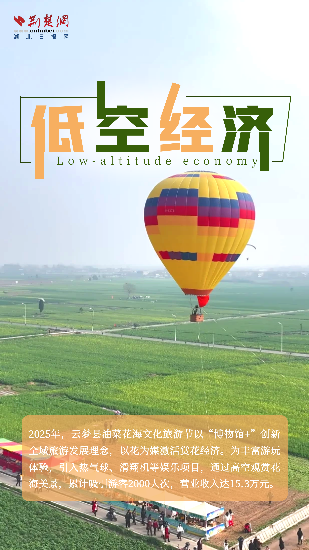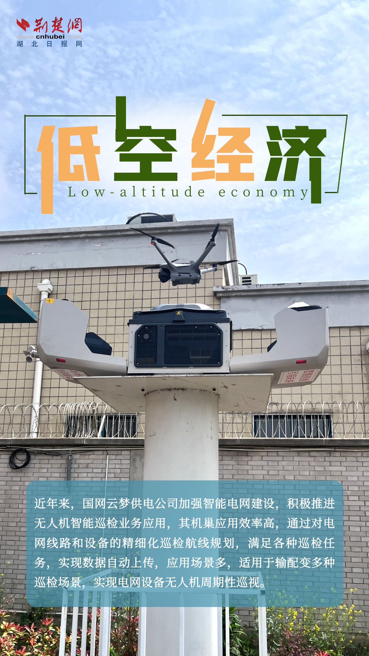荊楚網(wǎng)(湖北日?qǐng)?bào)網(wǎng))訊(記者楊卓玉 通訊員聶杰杰)低空經(jīng)濟(jì)是新質(zhì)生產(chǎn)力的典型代表,是多產(chǎn)業(yè)融合的綜合性經(jīng)濟(jì)形態(tài),是蘊(yùn)藏著巨大市場(chǎng)潛力的“新藍(lán)?!?。4月9日,記者走進(jìn)云夢(mèng)縣清明河鄉(xiāng)虹光社區(qū)千畝麥田、胡金店鎮(zhèn)盛砦村、國(guó)網(wǎng)云夢(mèng)縣供電公司云谷零計(jì)劃停電示范區(qū),實(shí)地感受低空經(jīng)濟(jì)在農(nóng)業(yè)、文旅等領(lǐng)域的智能應(yīng)用場(chǎng)景,探尋低空經(jīng)濟(jì)與鄉(xiāng)村發(fā)展的融合路徑;領(lǐng)略新型電力設(shè)施為經(jīng)濟(jì)發(fā)展提供的能源保障,助力云夢(mèng)縣打造高質(zhì)量發(fā)展新的增長(zhǎng)極。