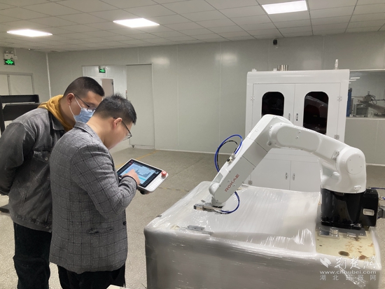 赤壁一制造業(yè)企業(yè)內(nèi),開發(fā)人員正調試設備。黃錚 攝