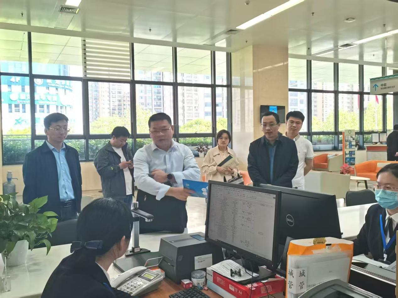 在孝感市民之家大廳,調(diào)研組實(shí)地查看了辦事窗口的運(yùn)行情況,詳細(xì)了解“高效辦成一件事”主題線上線下辦件流程、辦事指南發(fā)布和更新情況;與大廳工作人員深入交流,詢問(wèn)辦事群眾的滿意度以及在辦事過(guò)程中遇到的問(wèn)題。