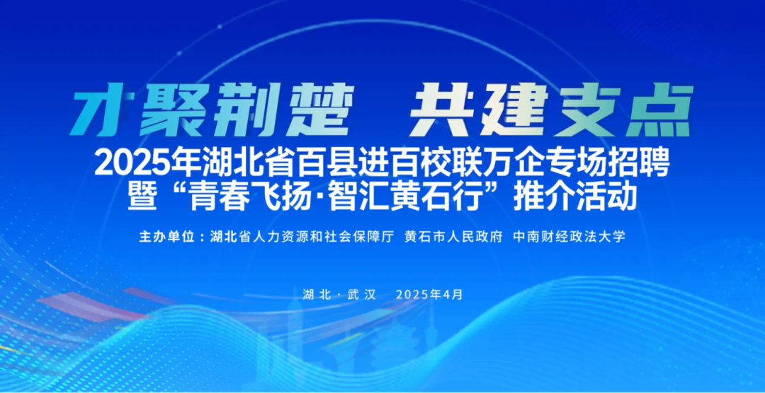 為深入實(shí)施“才聚荊楚”工程,湖北省人力資源和社會保障廳聯(lián)合黃石市人民政府、中南財經(jīng)政法大學(xué)擬于2025年4月19日(星期六)上午在中南財經(jīng)政法大學(xué)南湖校區(qū)舉辦“才聚荊楚·共建支點(diǎn)”—2025年湖北省百縣進(jìn)百校聯(lián)萬企專場招聘暨“青春飛揚(yáng)·智匯黃石行”推介活動。