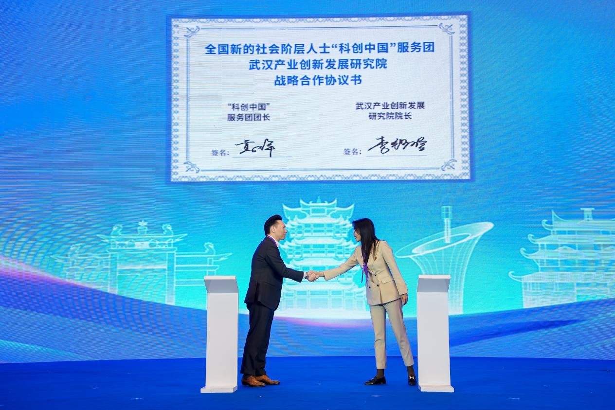隨后,新的社會(huì)階層人士“科創(chuàng)中國”服務(wù)團(tuán)與武漢產(chǎn)業(yè)創(chuàng)新發(fā)展研究院簽署合作協(xié)議,雙方將以服務(wù)國家戰(zhàn)略需求為導(dǎo)向,以科技創(chuàng)新為核心動(dòng)力,共同構(gòu)建“政產(chǎn)學(xué)研金服用”創(chuàng)新支持體系;圍繞武漢建設(shè)具有全國影響力的科技創(chuàng)新中心和科技創(chuàng)新高地目標(biāo),整合雙方資源,深化科技、產(chǎn)業(yè)、人才等領(lǐng)域合作,打造創(chuàng)新聯(lián)合體。