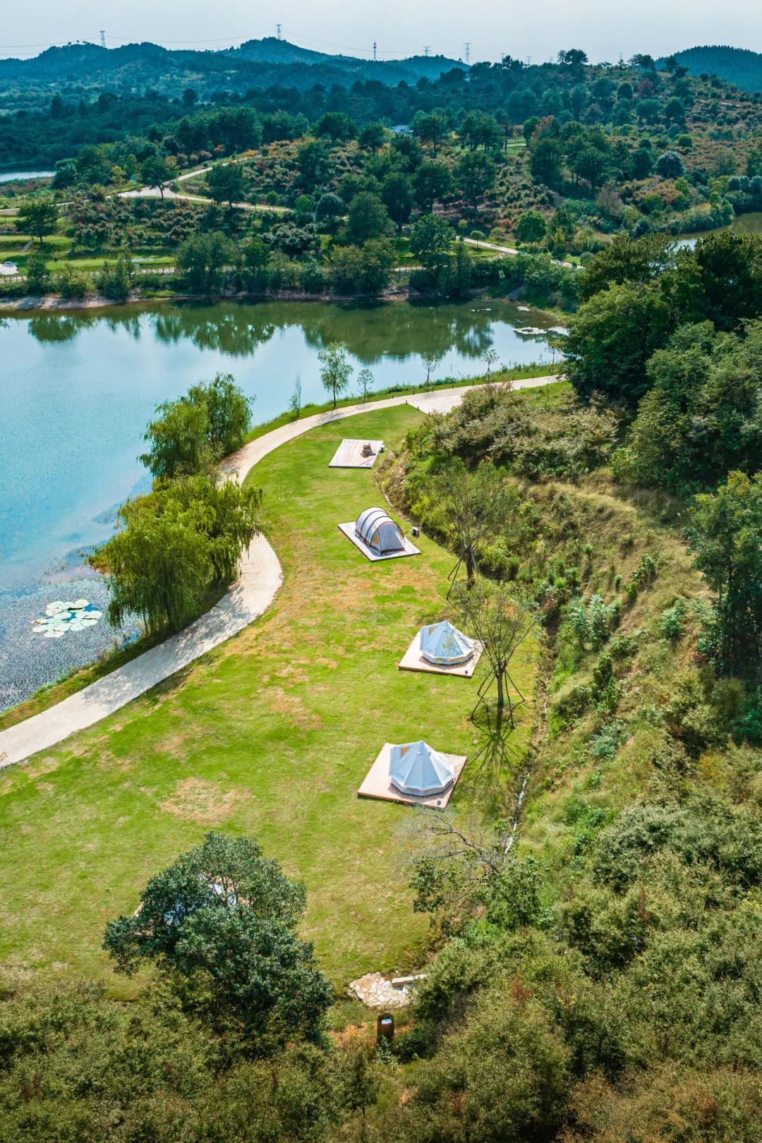 星星湖營(yíng)地占地2000畝,清澈的池塘和開(kāi)闊的自然景觀(guān)組成了這一處宛若仙境的景色。