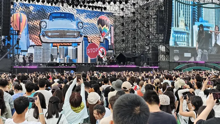 降臨,華燈初上,當(dāng)舞臺(tái)燈光如星河傾瀉,黃霄云以一首《星辰大?!穼⒎諊葡蚋叱??!艾F(xiàn)場(chǎng)的氛圍簡(jiǎn)直嗨到爆!我這次就是沖著她來的,她的歌聲太有穿透力了,也在一直給我力量!”來自孝感的樂迷孫女士難掩興奮之情。