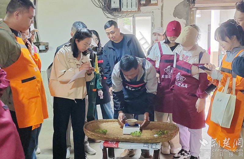 文化節(jié)期間,采茶制茶大賽讓活動嘉賓沉浸式體驗(yàn),大呼過癮。在"荒野尋茶"采茶大賽中,3支代表隊(duì)著裝統(tǒng)一,在層層茶壟間展開激烈角逐。評委們嚴(yán)格執(zhí)行生產(chǎn)標(biāo)準(zhǔn),對鮮葉驗(yàn)質(zhì)稱重,嚴(yán)格評判,最終武漢嘆茶居茶藝館代表隊(duì)獲得優(yōu)勝。