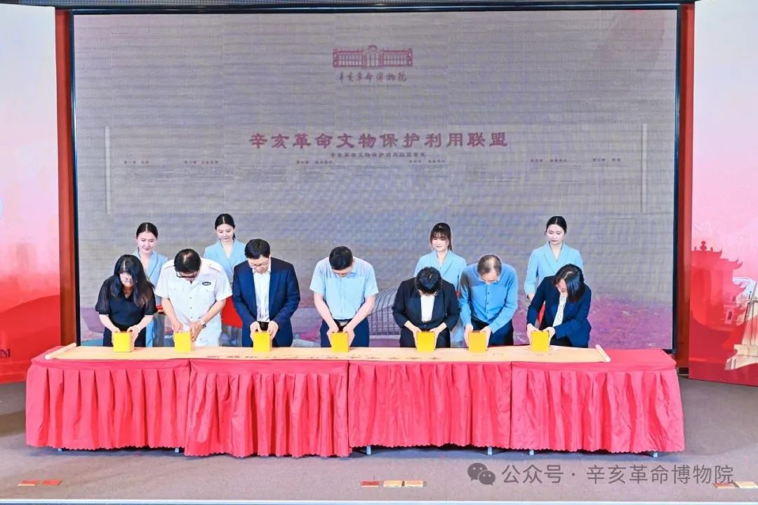 隨后,辛亥革命博物院、武漢中山艦博物館、孫中山故居紀念館、辛亥革命紀念館、上海孫中山故居紀念館、孫中山大元帥府紀念館、南京孫中山紀念館發(fā)起單位代表共同執(zhí)印,在盟約長卷上蓋章,標志著辛亥革命文物保護利用聯盟正式成立。