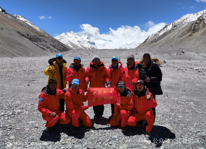中國地質(zhì)大學(武漢)登山隊在珠峰之巔。