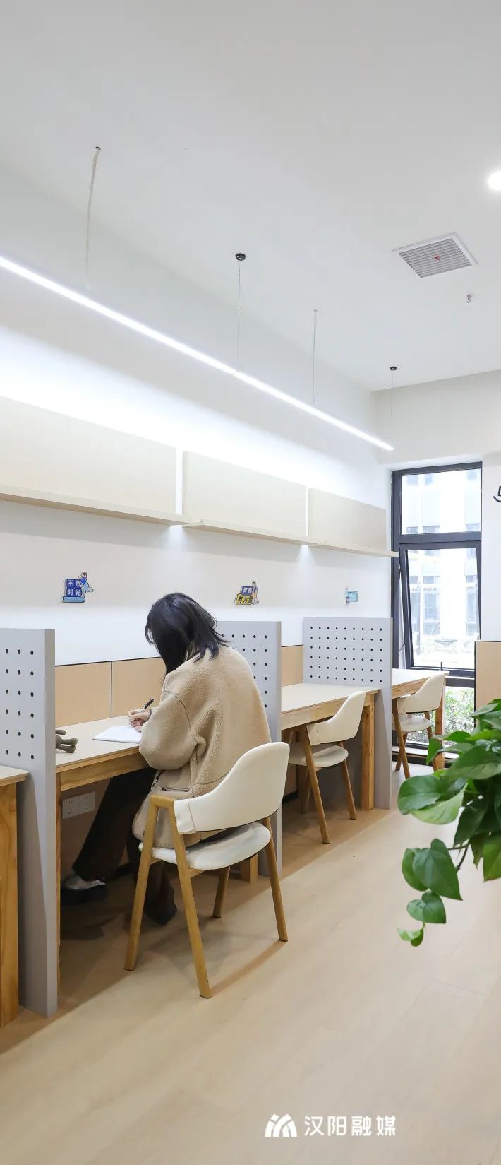 △公寓一樓,青年驛站、青年夜校、共享自習室內(nèi),年輕人樓上安家,樓下創(chuàng)業(yè)。