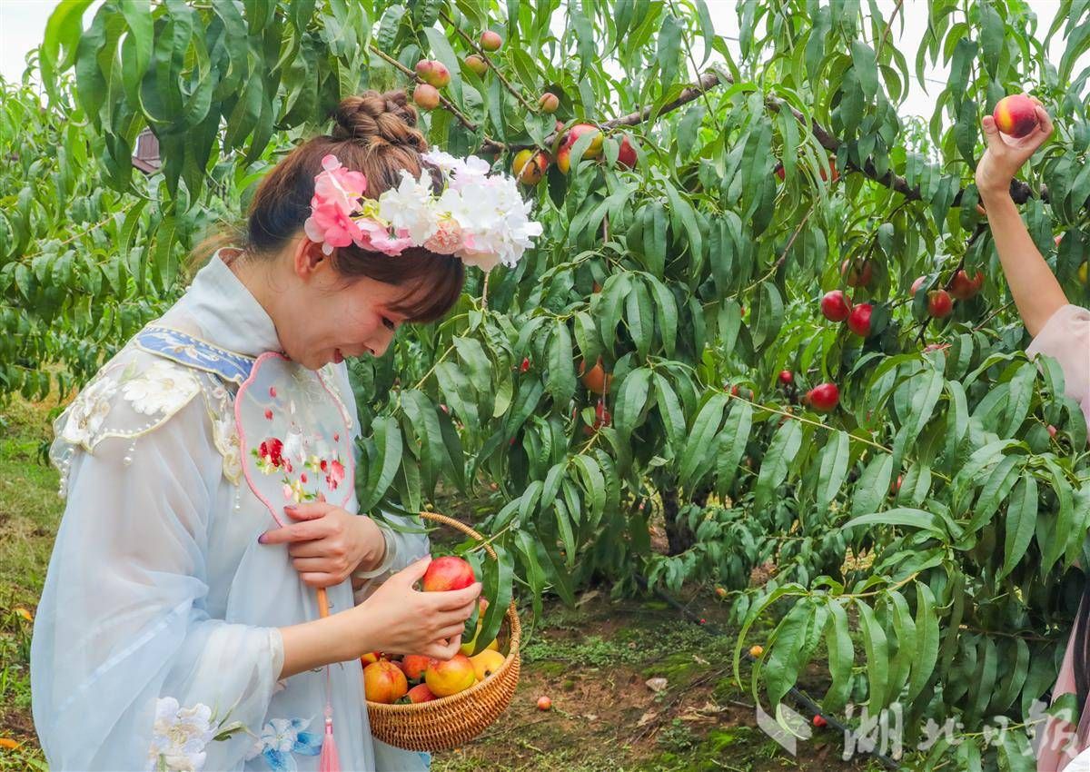 6月10日,游客在卓爾桃花驛小鎮(zhèn)采摘蜜桃。(湖北日報通訊員 陳超 攝)