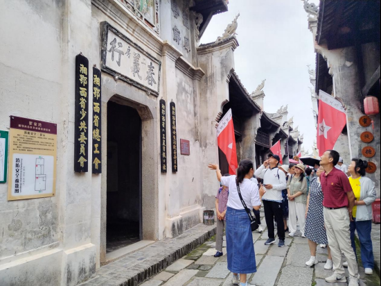 清晨,黨員們懷著崇敬的心情踏上征程。首站抵達(dá)洪湖市瞿家灣鎮(zhèn)——湘鄂西革命根據(jù)地的首府所在地。在講解員的帶領(lǐng)下,大家依次參觀了湘鄂西中央分局、湘鄂西省委會(huì)、湘鄂西革命軍事委員會(huì)、湘鄂西省蘇維埃政府、《紅旗日?qǐng)?bào)》社、《工農(nóng)日?qǐng)?bào)》社等39處革命舊址。行走在古樸的青石板路上,觸摸著斑駁的歷史建筑,聆聽(tīng)著賀龍、周逸群、段德昌等革命先輩在此浴血奮戰(zhàn)、領(lǐng)導(dǎo)人民開(kāi)展艱苦卓絕斗爭(zhēng)的故事,黨員們仿佛穿越時(shí)空,回到了那段烽火連天的崢嶸歲月。每一處舊址都是一本生動(dòng)的教材,無(wú)聲地訴說(shuō)著革命先輩們堅(jiān)定的信仰、無(wú)畏的犧牲和卓越的功勛,讓在場(chǎng)的每一位黨員深刻感悟到中國(guó)共產(chǎn)黨人矢志不渝的初心使命。