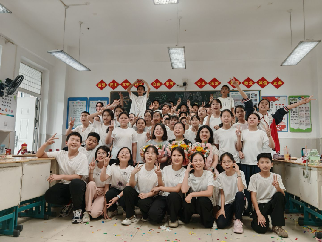 本來以為,我會站在原地看學(xué)生奔赴山海。沒想到,我也收到了超大的驚喜。離校前,家長為班級組織了一場溫馨的活動,還播放了一段長達(dá)6分鐘的“回憶殺”視頻,太令我感動了!