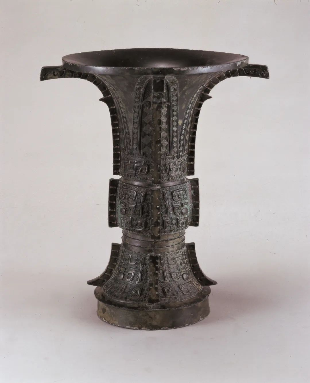 此尊高37.1厘米、重6.6千克,形制喇叭口、長頸、微鼓腹,高圈足、觚形。圈足內(nèi)鑄銘三字“天獸御”,“天獸”是族氏名,“御”是祭祀的意思。
