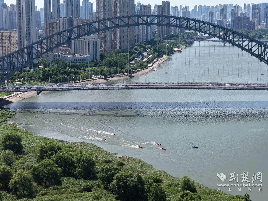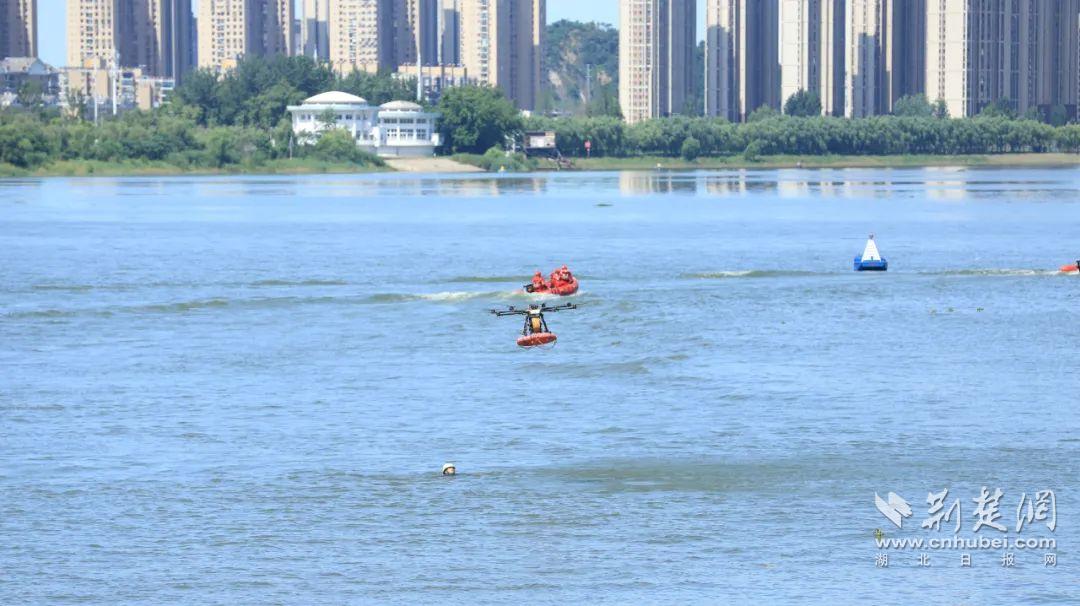 活動現(xiàn)場還模擬了7·16武漢國際渡江節(jié)救援保障演練。只見漢臺救援專業(yè)力量協(xié)同作戰(zhàn),模擬了選手體力不支、突發(fā)疾病、被水流帶偏航道等可能出現(xiàn)的多種緊急情況。水面上,救生艇快速靠近“遇險”人員;救援人員迅速將其拉上船,實施急救。同時,無人機(jī)高空巡航,利用熱成像與高清攝像頭實時監(jiān)測江面,一旦發(fā)現(xiàn)異常,便即刻通知救援船只精準(zhǔn)救援,為渡江節(jié)筑牢安全防線。