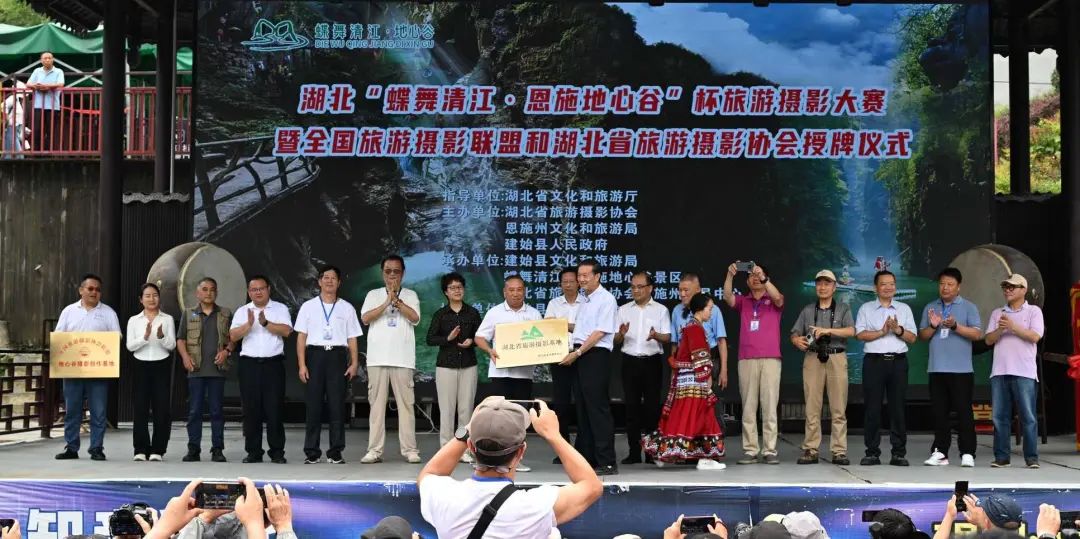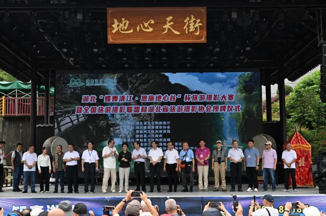 7月8日,湖北“蝶舞清江?恩施地心谷”杯旅游攝影大賽啟動儀式暨全國旅游攝影協(xié)會聯(lián)盟和湖北省旅游攝影協(xié)會基地授牌宣傳推廣活動在恩施地心谷景區(qū)隆重舉行。